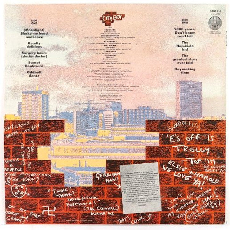 City Boy's self-titled debut ranges from blues/funk tunes to mellow AOR songs to progressive, melodic tracks -- there's something on the album for most everyone to like. From the Sweet-ish anthem "The Greatest Story Ever Told" to the quirky "Oddball Dance," City Boy is an eclectic, interesting and notable introduction. http://en.wikipedia.org/wiki/City_Boy_%28band%29