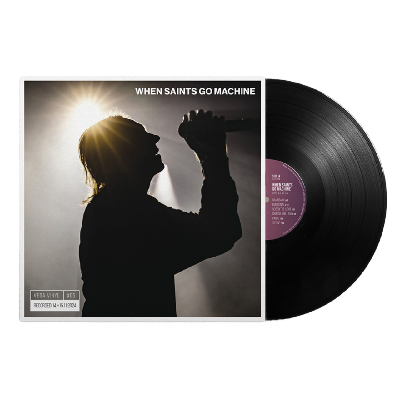 ”When Saint Go Machine – Live at VEGA” fanger bandets særlige live-energi og kompromisløse musikalske univers, hvor elektroniske eksperimenter smelter sammen med storladen pop og knitrende følsomhed. When Saints Go Machine er kendt for deres intense,