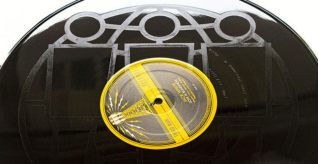 The 12-inch single of Jack White’s “Sixteen Saltines” comes complete with a playable etching on the b-side (designed by George Ingram), a cover of U2’s “Love is Blindness.” Truly a sight to behold, the etching depicts Third Man’s iconic logo and the grooves of the record play through the image, presenting consumers with the world’s first-ever playable etched record ®.This is an entirely different process (and look) from your Styx and Split Enz records from the 80’s. No lasers, holograms, or rainbows are involved in this playable etching. http://en.wikipedia.org/wiki/Jack_White_%28musician%29
